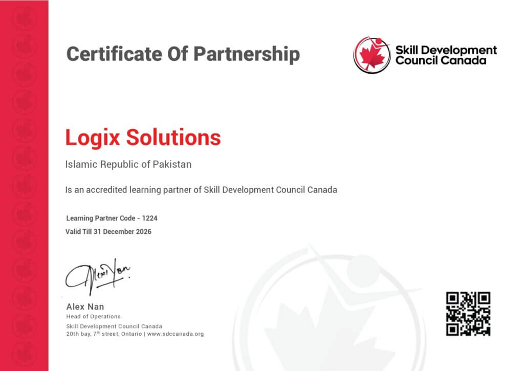 Logix Solutions is proudly certified by Skill Development Council Canada, offering globally recognized HR and professional training programs that build practical, future-ready skills.